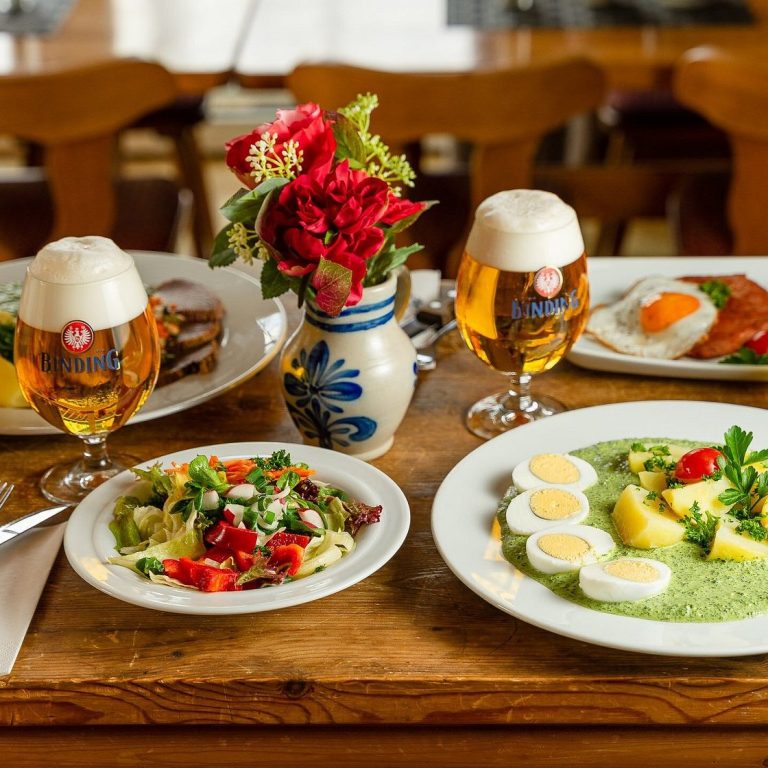 Wir legen Wert auf authentische deutsche Küche mit regionalen Zutaten. Unsere Grünen Soße wird hausgemacht, Fleisch und Kartoffeln stammen von Bauern aus der Region. Genießen Sie in unserem großen Biergarten oder unseren vielseitigen Innenräumen ein traditionelles und gemütliches Erlebnis.